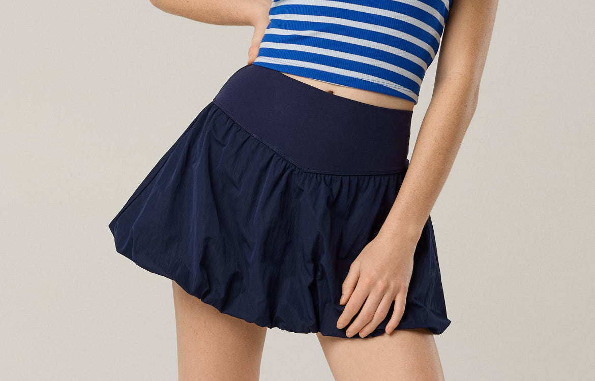 On-court performance meets off-court cool. A bubble hem and quick-drying, sweat-wicking fabric make this lightweight skirt a playful option for tennis, padel, brunch, and beyond.