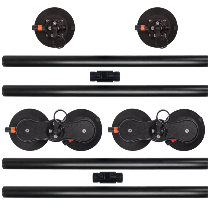 Nuestro nuevo sistema de rack diseñado para una extrema versatilidad y portabilidad. Las Monkey Bars tiene una circusferencia de 48" permitiendo una gran variedad de amarres como para kayaks, tablas de surf, SUP, biciletas entre otros. Este esta compuesto por 6 ventosas (4 en la barrar frontal y 2 en la barra trasera).