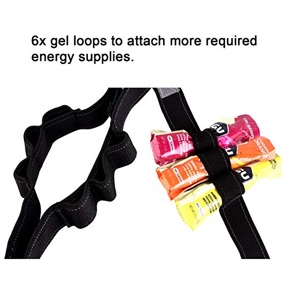 Cinturón elástico para llevar el número con prevista para llevar 6 geles.