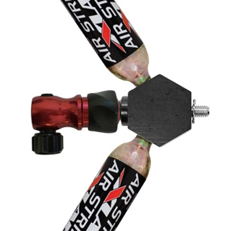 Accesorio para colocar 2 cilindros de CO2 y el adaptador para inflar